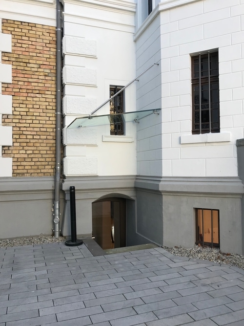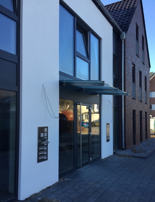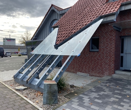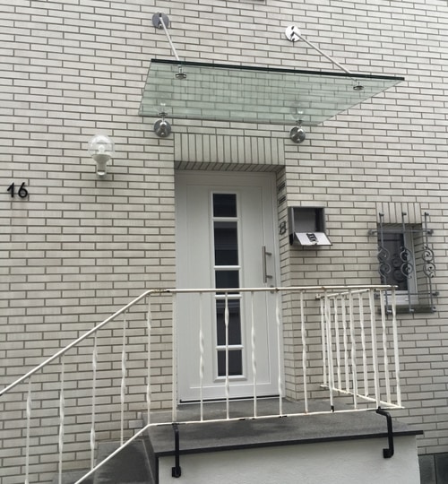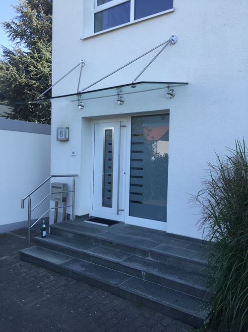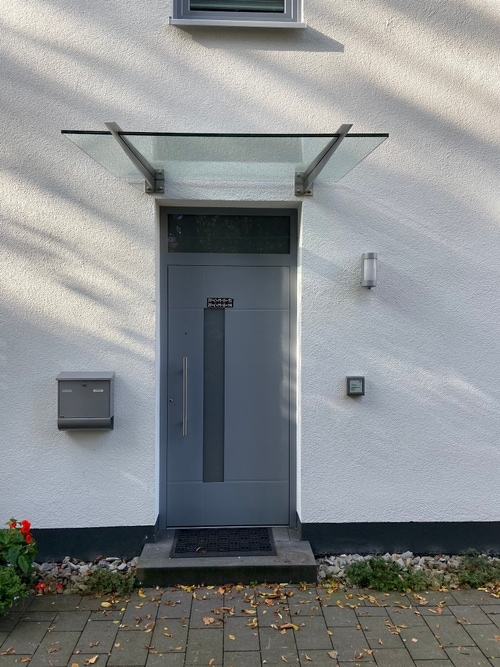 Überdachungen aus Glas bringen Leichtigkeit und nehmen dem Eingangsbereich kein Licht.